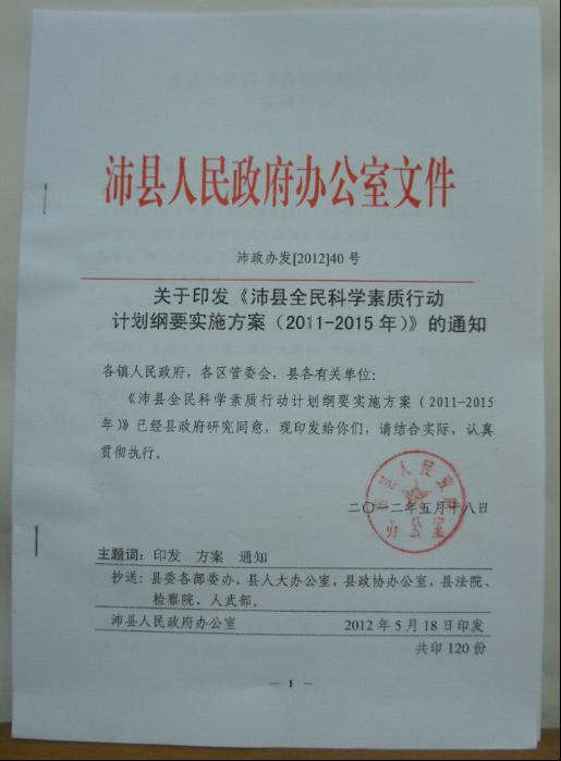 為進一步貫徹實施國務院《全民科學素質行動計劃綱要(2006—2010—2020年)》和《全民科學素質行動計劃綱要實施方案(2011-2015年)》,全面推進沛縣“十二五”全民科學素質工作,近期,沛縣人民政府辦公室印發了《沛縣全民科學素質行動計劃綱要實施方案(2011—2015)的通知》(沛政辦發〔2012〕40號)。