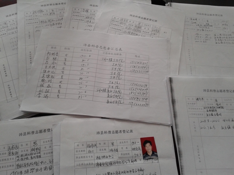 上報的科普志愿者登記表