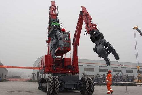 雙動力智能型雙臂手系列化救援工程機械產品研制項目,是國家“十二五”科技支撐計劃重點項目,由江蘇八達重工機械有限公司申報,2011年8月通過科技部立項。公司研發的大型搶險救援機器人在各種自然災害和重大事故現場,可以輪履復合切換行駛,及時快捷地到達救援現場;以油、電雙動力切換驅動雙臂、雙手協調作業,在坍塌廢墟中實現剪切、破碎、切割、擴張、抓取等10項搶險任務作業;還具備生命探測、圖像傳輸、故障自診等功能。此次下線的是30噸級大型救援機器人。吳國彬出席儀式并講話